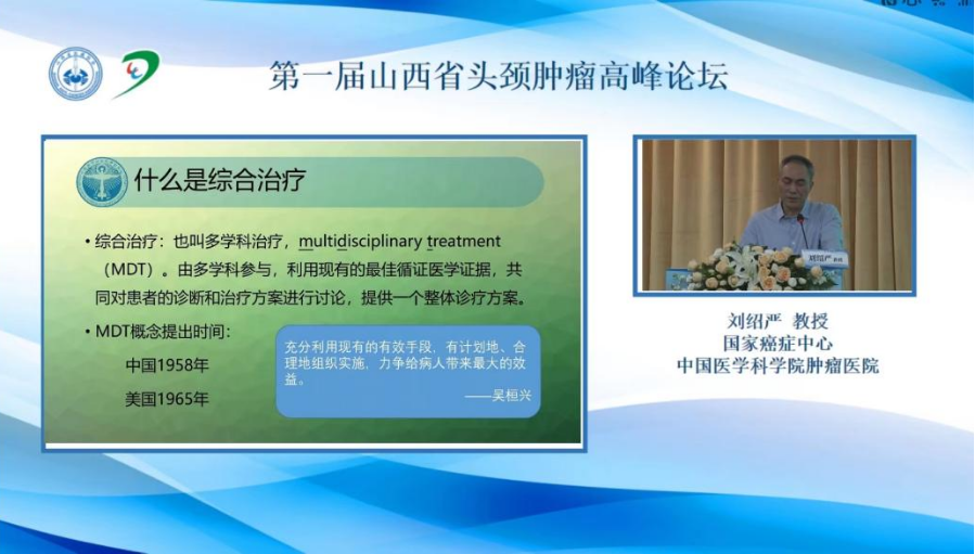 刘绍严教授指出,,,, ,所谓的综合治疗,,,, ,也称为多学科治疗,,,, ,是由多学科加入,,,, ,使用现有的最佳循证医学证据,,,, ,配合对患者的诊断和治疗计划举行讨论,,,, ,最终提供一个整体诊疗计划。。。。。这个计划应该是基于多方面的思量,,,, ,包括患者的身体状态、病情严重水平、小我私家意愿以及医学科学的最新希望等。。。。。